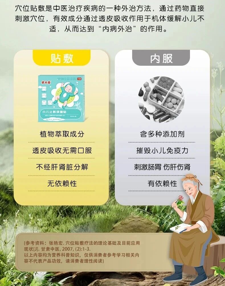 更貼心的是,它不用口服,而是通過穴位滲透發(fā)揮作用,避免了藥物對寶寶腸胃和肝臟的負擔,溫和地幫寶寶緩解咳嗽、順暢呼吸。