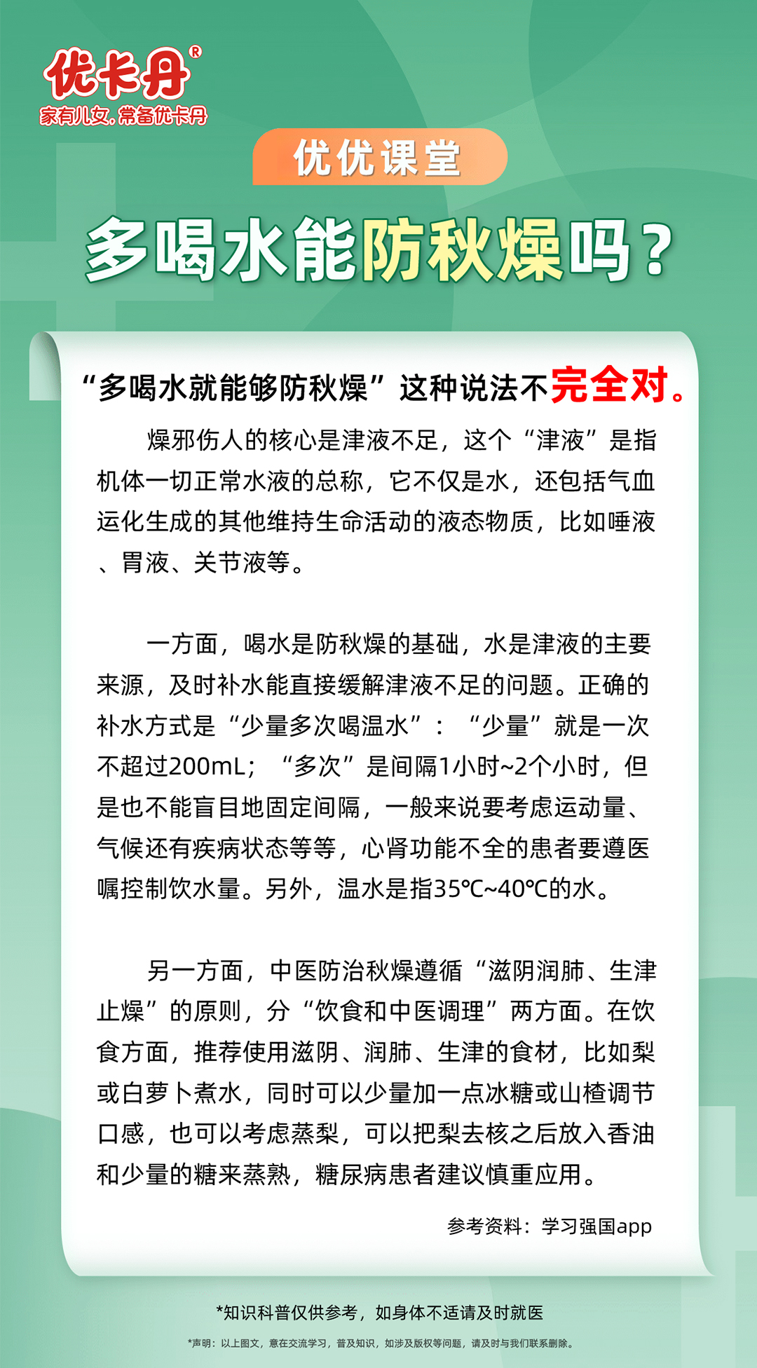 優(yōu)優(yōu)課堂│多喝水能防秋燥嗎?