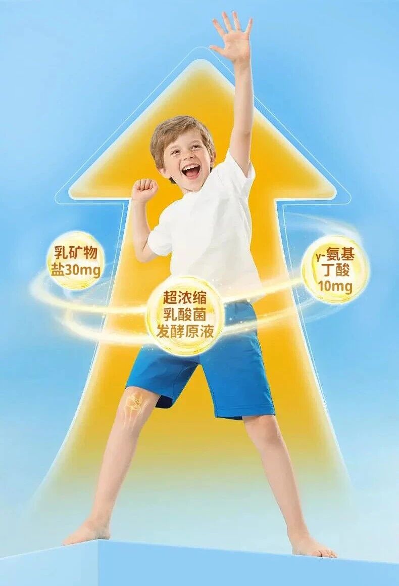 孩子的身高牽動著家長的心。高鈣y-氨基丁酸軟糖中的3大成長力元素——乳礦物鹽、γ- 氨基丁酸和超濃縮乳酸菌發(fā)酵原液,協(xié)同作戰(zhàn)。