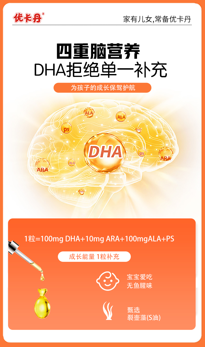 期末沖刺的關(guān)鍵時期,別讓孩子因?yàn)闋I養(yǎng)跟不上而掉隊(duì)!選擇優(yōu)卡丹 DHA 藻油 + ARA 凝膠糖果,每天 1 粒,高含量 DHA + 美味口感 + 安全保障 + 品牌保障,全方位助力孩子輕松應(yīng)對考試,發(fā)揮出最佳水平!