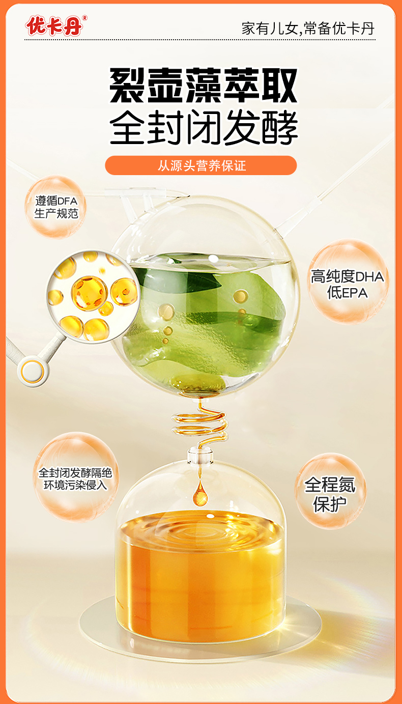 給孩子吃的東西,安全永遠(yuǎn)是第一位。優(yōu)卡丹 DHA 藻油 + ARA 凝膠糖果選用海裂壺藻作為 DHA 來源,這種藻種不依賴海洋環(huán)境,從源頭避免了重金屬、污染物等風(fēng)險,純度更高,也更安全。