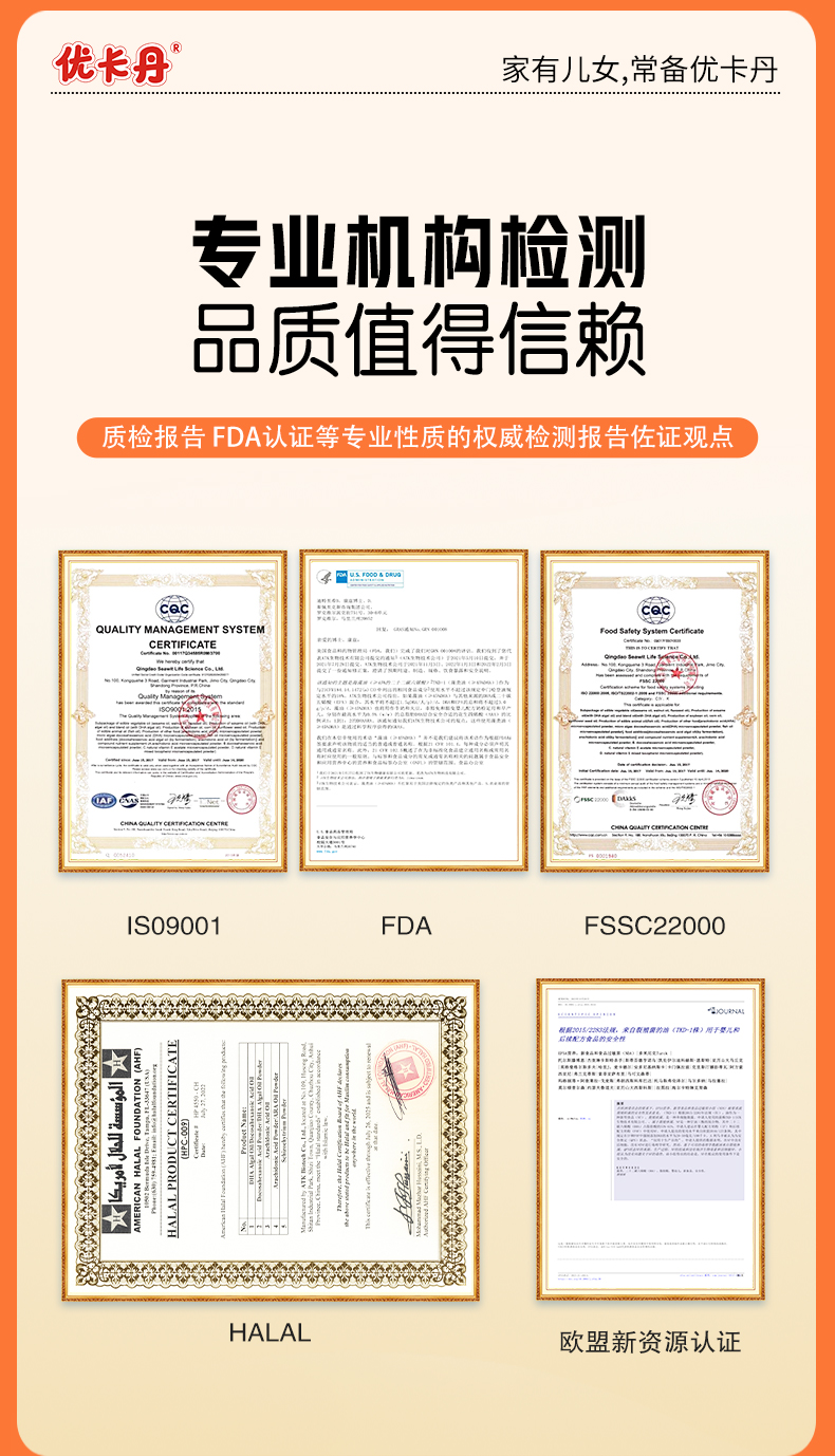 給孩子選營養(yǎng)品,靠譜二字最讓家長安心。優(yōu)卡丹DHA 藻油+ ARA凝膠糖果不僅通過了 ISO9001、FDA、FSSC22000 等國際權(quán)威檢測認(rèn)證,還手握3項(xiàng)中國專利,從配方研發(fā)到生產(chǎn)技術(shù)都經(jīng)過專業(yè)驗(yàn)證。